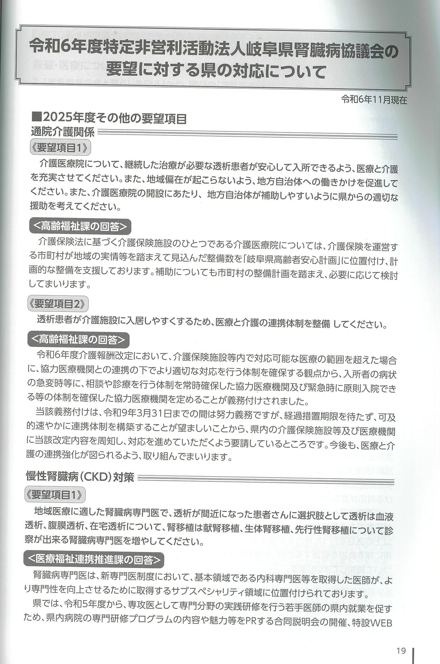 ・特定非営利活動法人岐阜県腎臓病協議会の要望に対する県の対応について
